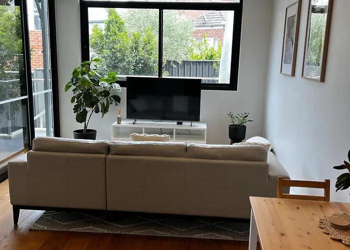 50m^2の2 Bedroom Gem メルボルンアパ-トはモナシュ大学から6キロメ-トルの距離で,Dfo エッセンドンから徒歩で約25分の場所にあります. お客様はアパ-トのテラスから庭園の景色を眺めながらリラックスできます.